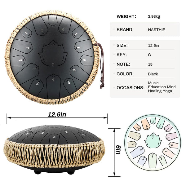 The drum is designed for simplicity, allowing even beginners to play calming tunes without needing to know complex music theory.